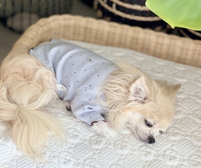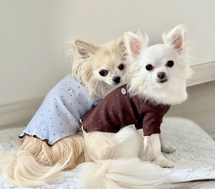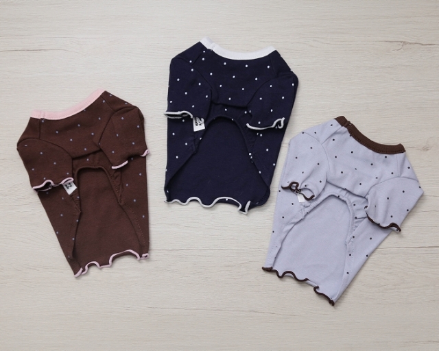 洋服のデザイン、また愛犬の個体差や毛量によって若干サイズが異なる場合がございますので、事前にワンちゃんのサイズを測った上でご検討下さい。