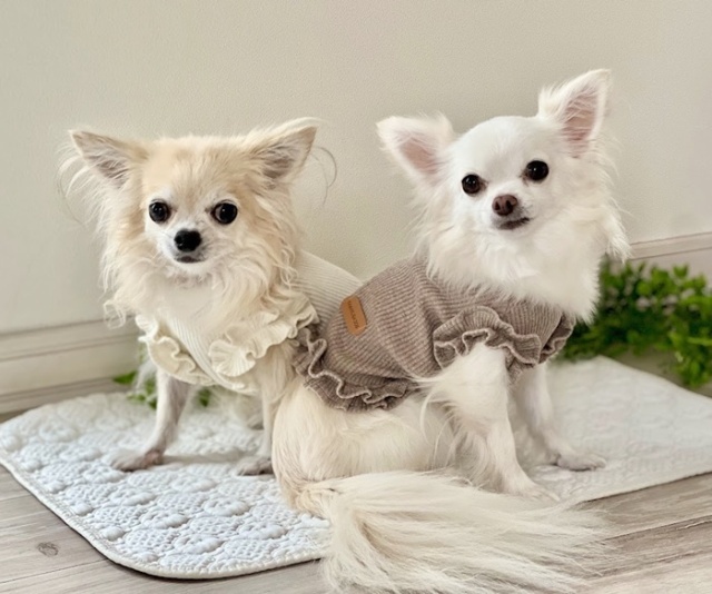 洋服のデザイン、また愛犬の個体差や毛量によって若干サイズが異なる場合がございますので、事前にワンちゃんのサイズを測った上でご検討下さい。
