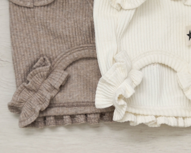 さりげないフリルが女の子らしさを引き立て、上品でナチュラルな印象に仕上がります。