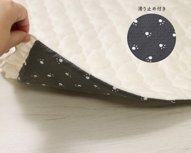 裏面には滑り止め加工を施し、フローリングの上でもズレにくく快適。おうち時間を安心して過ごせます。