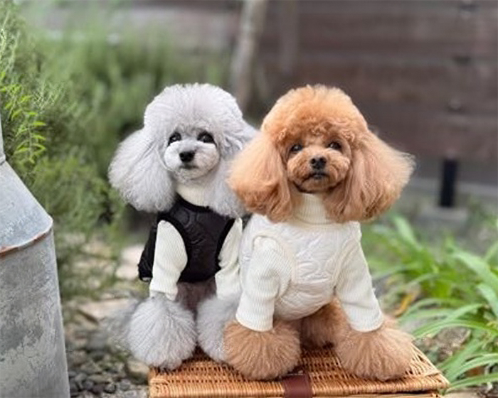 洋服のデザイン、また愛犬の個体差や毛量によって若干サイズが異なる場合がございますので、事前にワンちゃんのサイズを測った上でご検討下さい。