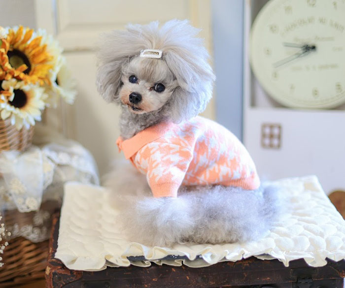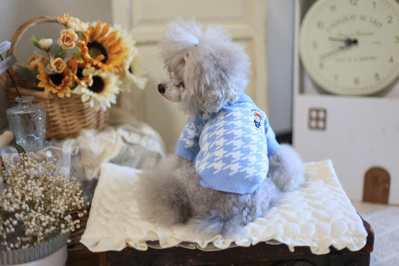 洋服のデザイン、また愛犬の個体差や毛量によって若干サイズが異なる場合がございますので、事前にワンちゃんのサイズを測った上でご検討下さい。