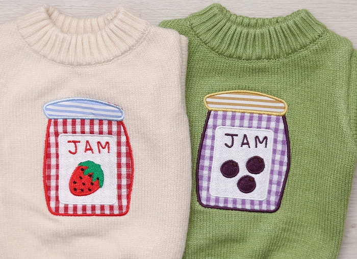 いちごとブルーベリーのジャム瓶をモチーフにしたワッペンがポイント!遊び心のある可愛さをプラス♪