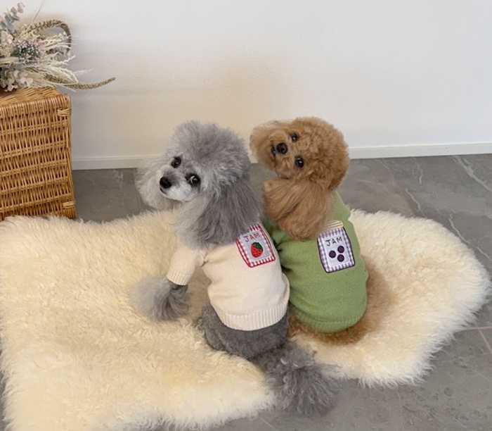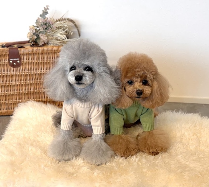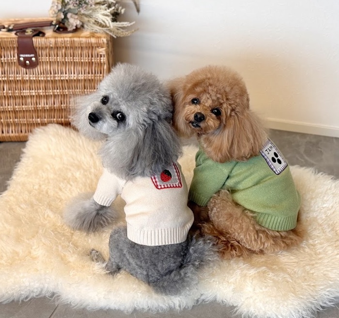 洋服のデザイン、また愛犬の個体差や毛量によって若干サイズが異なる場合がございますので、事前にワンちゃんのサイズを測った上でご検討下さい。