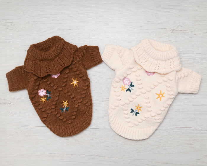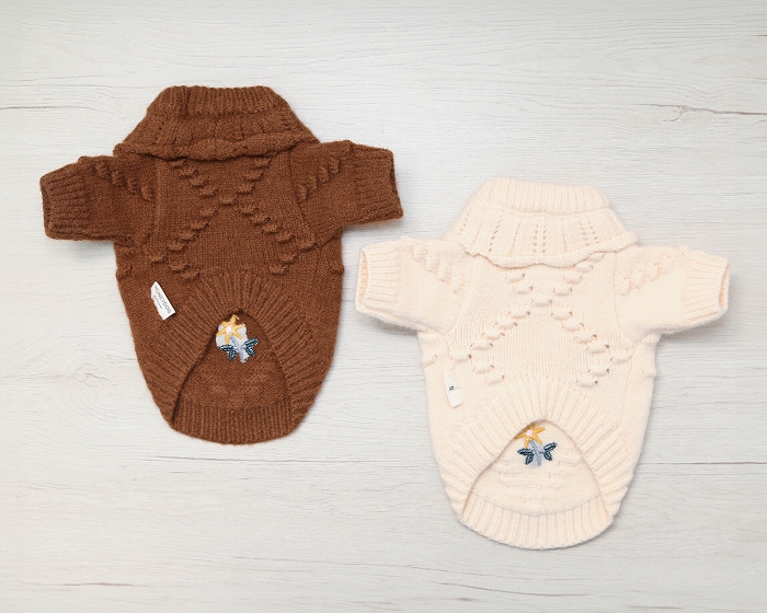 ぽこぽことした編み柄&花刺繍がポイント