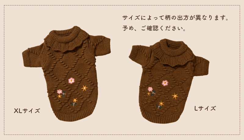 洋服のデザイン、また愛犬の個体差や毛量によって若干サイズが異なる場合がございますので、事前にワンちゃんのサイズを測った上でご検討下さい。