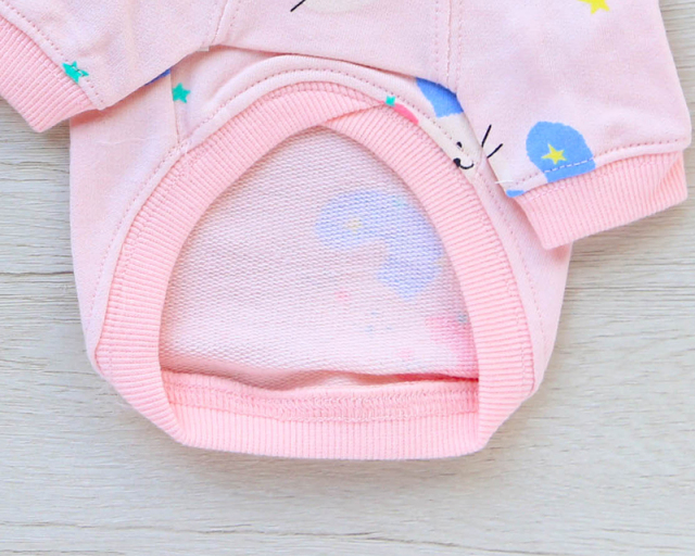 アイボリーとピンクの淡い色合いが、わんちゃんの可愛さを引き立てます。おでかけや撮影にもおすすめの一枚です。