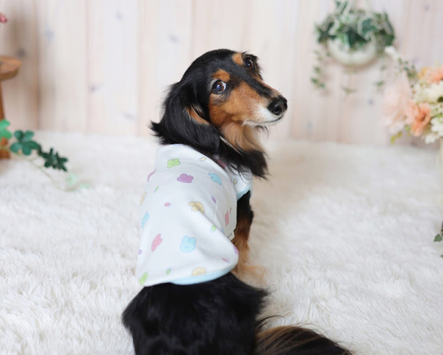 デリケートなわんちゃんのお肌にも安心。ふんわり柔らかな肌ざわりで、毎日心地よく着ていただけます。