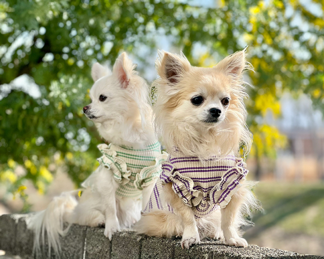 洋服のデザイン、また愛犬の個体差や毛量によって若干サイズが異なる場合がございますので、事前にワンちゃんのサイズを測った上でご検討下さい。