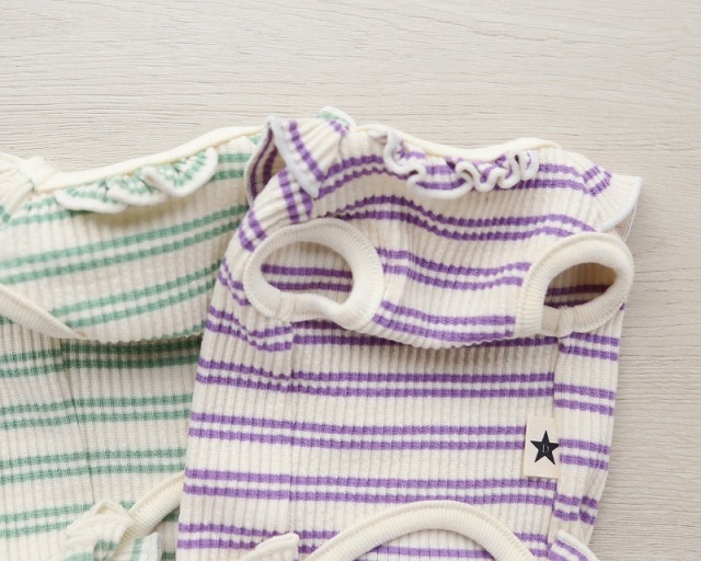 首元のフリルがさりげなく華やぎ、上品な可愛らしさを演出します。