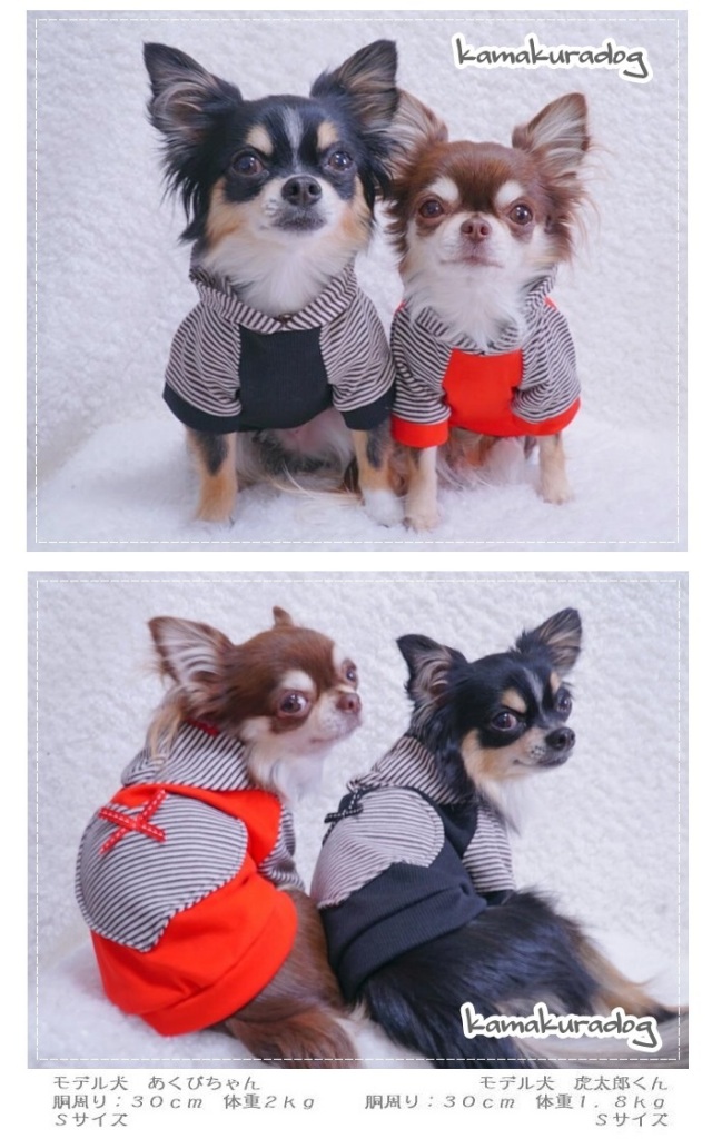 洋服のデザイン、また愛犬の個体差や毛量によって若干サイズが異なる場合がございますので、事前にワンちゃんのサイズを測った上でご検討下さい