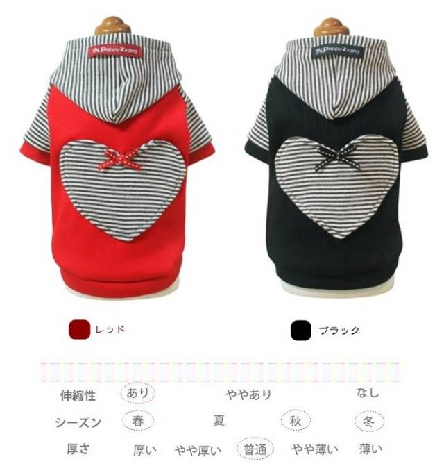 生地が伸縮性があってフードと袖と背中のハートがボーダー柄でとてもかわいいです