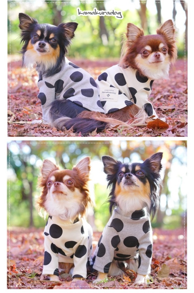 洋服のデザイン、また愛犬の個体差や毛量によって若干サイズが異なる場合がございますので、事前にワンちゃんのサイズを測った上でご検討下さい。