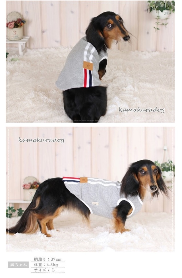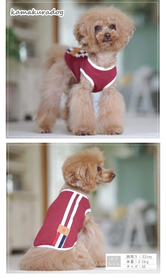 洋服のデザイン、また愛犬の個体差や毛量によって若干サイズが異なる場合がございますので、事前にワンちゃんのサイズを測った上でご検討下さい。
