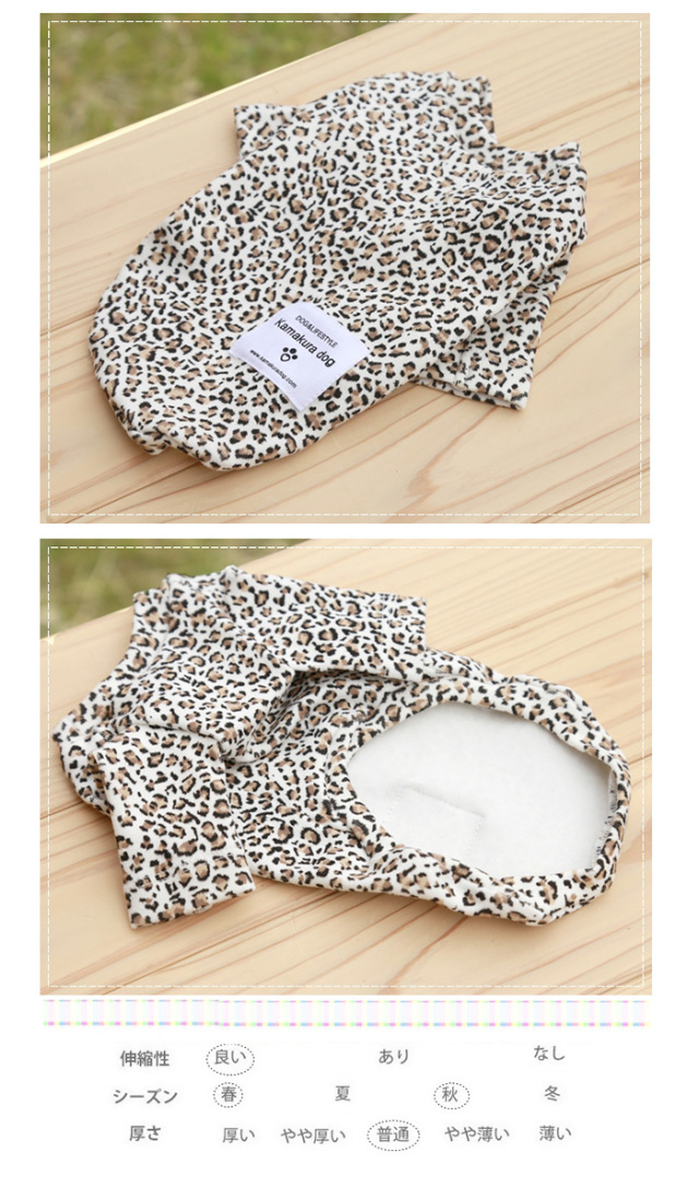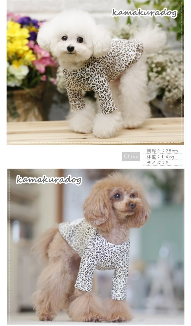 洋服のデザイン、また愛犬の個体差や毛量によって若干サイズが異なる場合がございますので、事前にワンちゃんのサイズを測った上でご検討下さい。