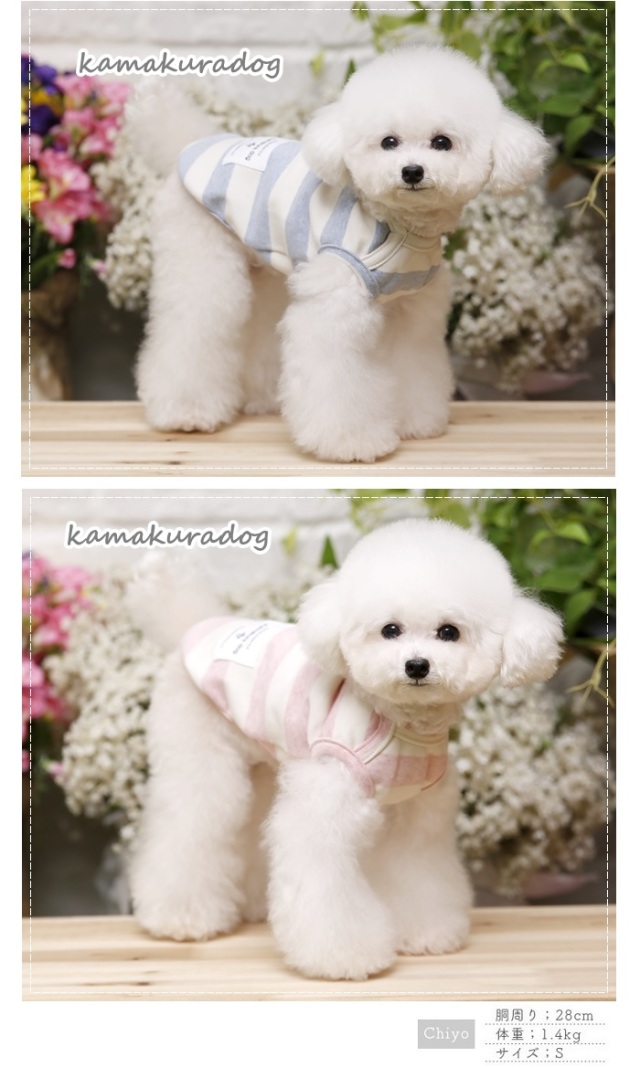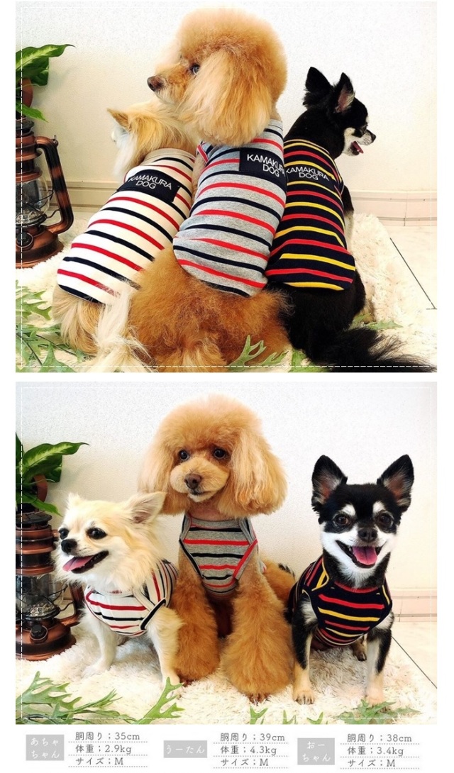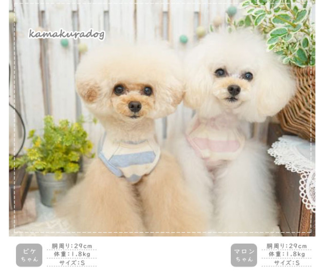 洋服のデザイン、また愛犬の個体差や毛量によって若干サイズが異なる場合がございますので、事前にワンちゃんのサイズを測った上でご検討下さい。