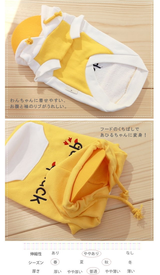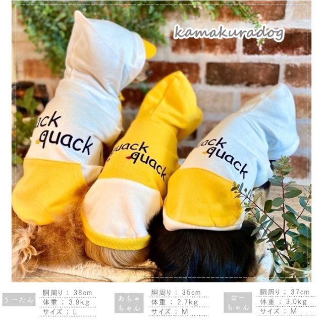 洋服のデザイン、また愛犬の個体差や毛量によって若干サイズが異なる場合がございますので、事前にワンちゃんのサイズを測った上でご検討下さい。