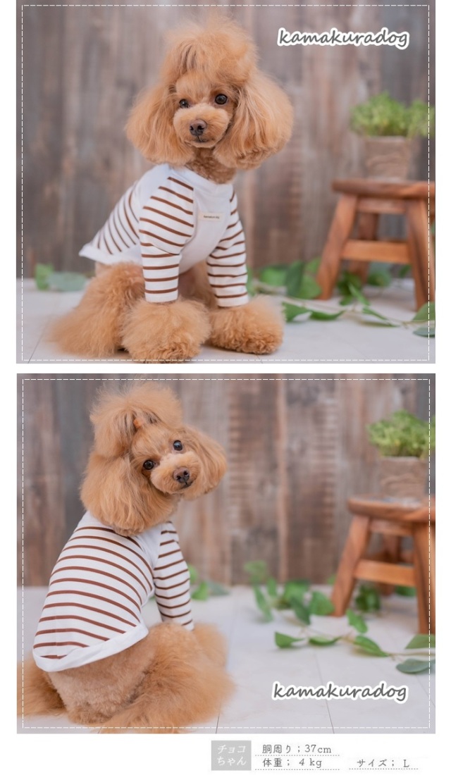 洋服のデザイン、また愛犬の個体差や毛量によって若干サイズが異なる場合がございますので、事前にワンちゃんのサイズを測った上でご検討下さい。