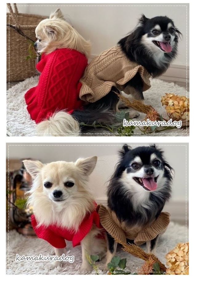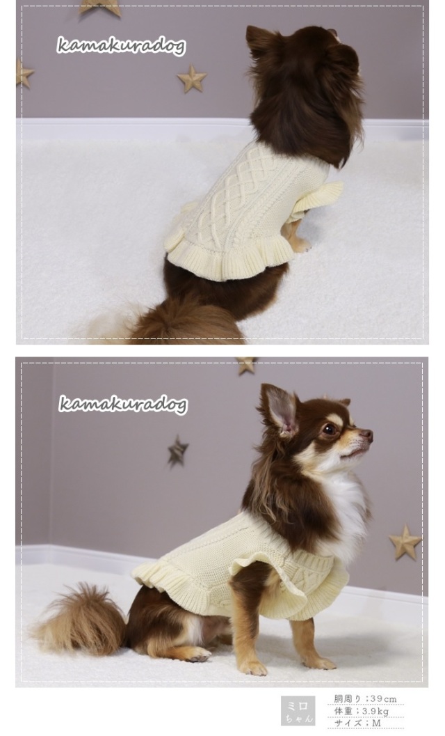 洋服のデザイン、また愛犬の個体差や毛量によって若干サイズが異なる場合がございますので、事前にワンちゃんのサイズを測った上でご検討下さい。
