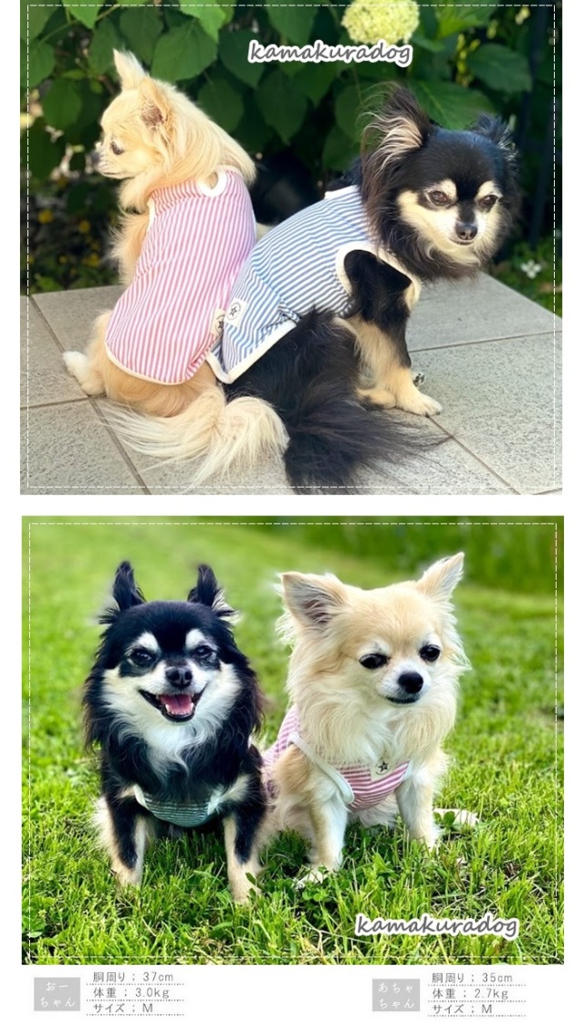 洋服のデザイン、また愛犬の個体差や毛量によって若干サイズが異なる場合がございますので、事前にワンちゃんのサイズを測った上でご検討下さい。