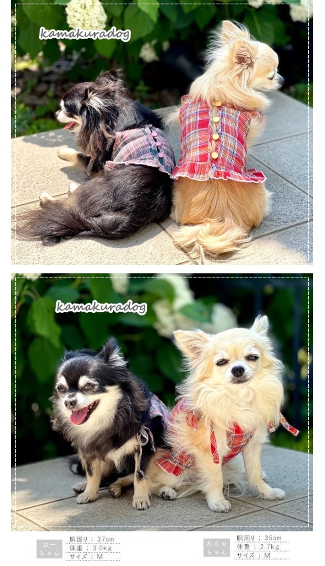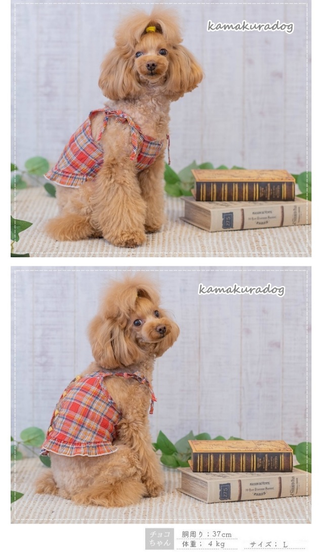 洋服のデザイン、また愛犬の個体差や毛量によって若干サイズが異なる場合がございますので、事前にワンちゃんのサイズを測った上でご検討下さい。