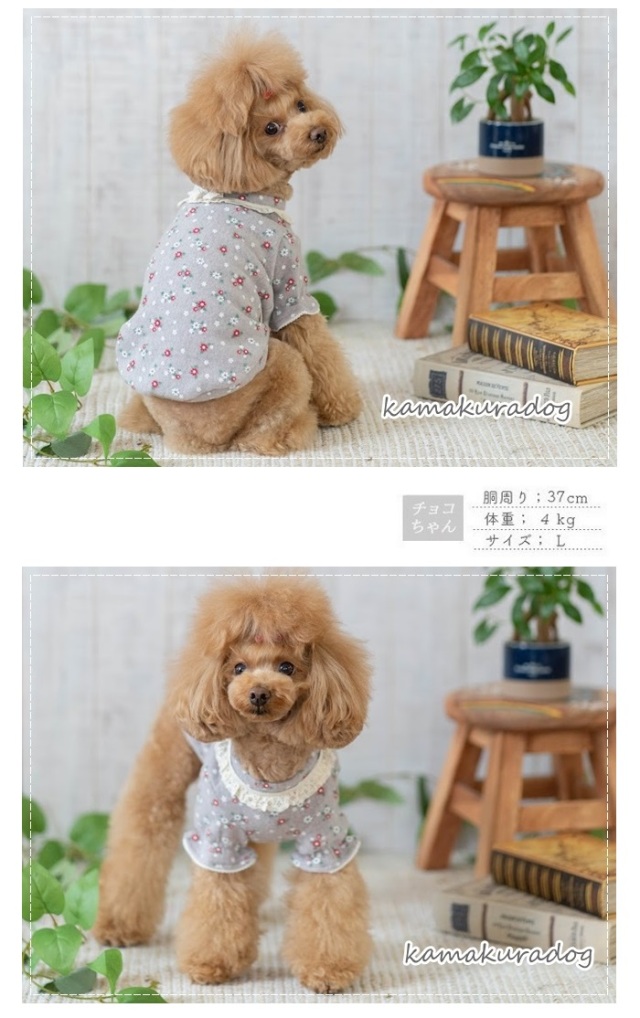 洋服のデザイン、また愛犬の個体差や毛量によって若干サイズが異なる場合がございますので、事前にワンちゃんのサイズを測った上でご検討下さい。
