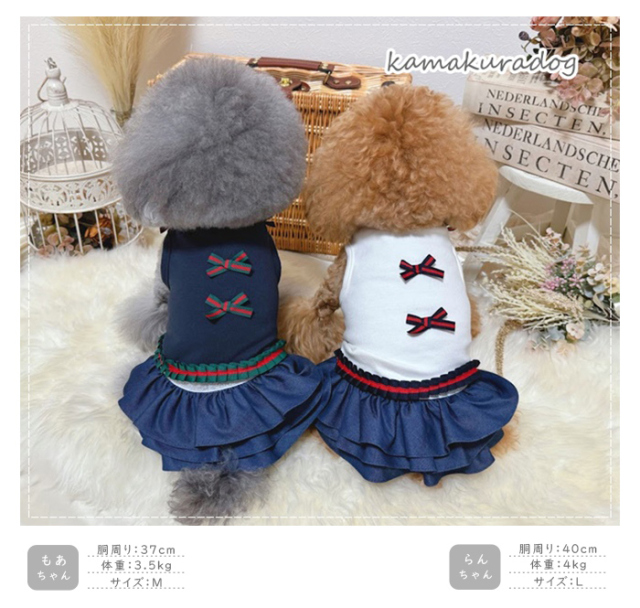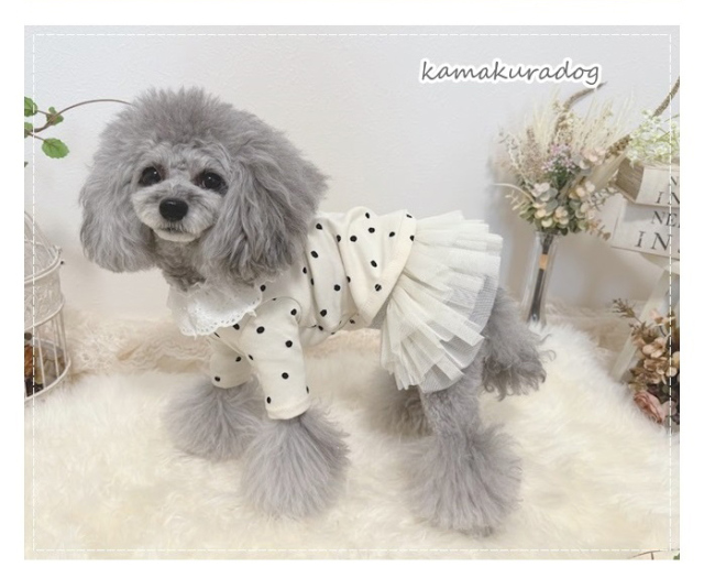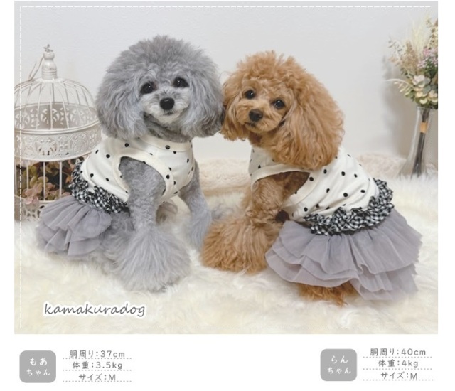 洋服のデザイン、また愛犬の個体差や毛量によって若干サイズが異なる場合がございますので、事前にワンちゃんのサイズを測った上でご検討下さい。