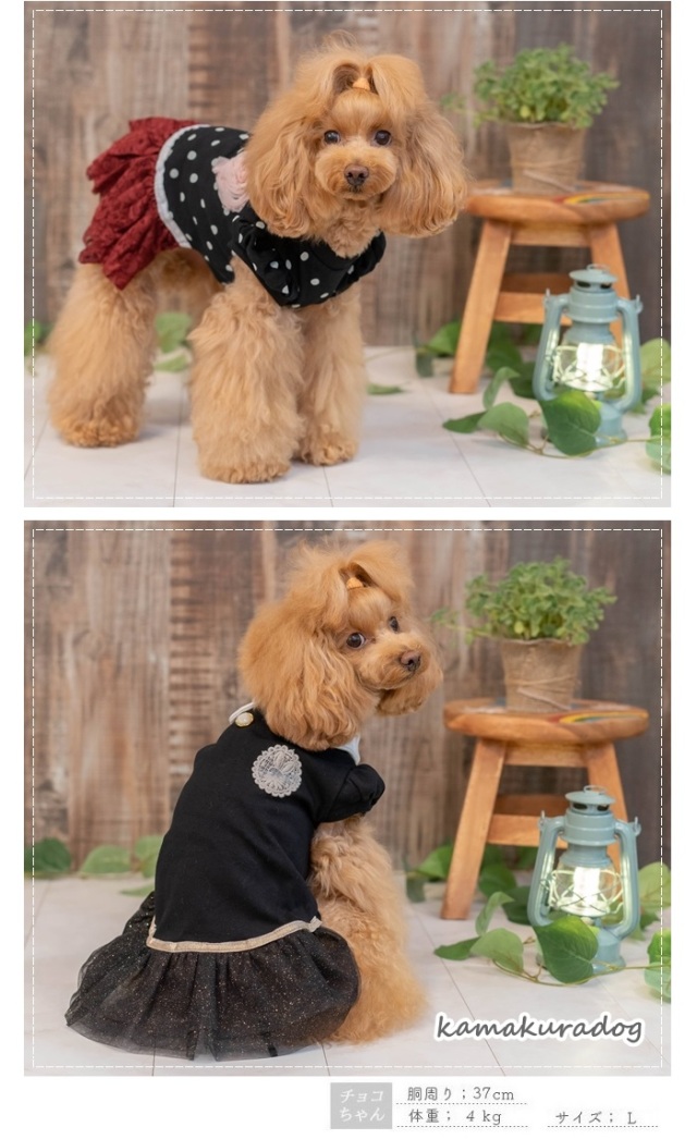 洋服のデザイン、また愛犬の個体差や毛量によって若干サイズが異なる場合がございますので、事前にワンちゃんのサイズを測った上でご検討下さい