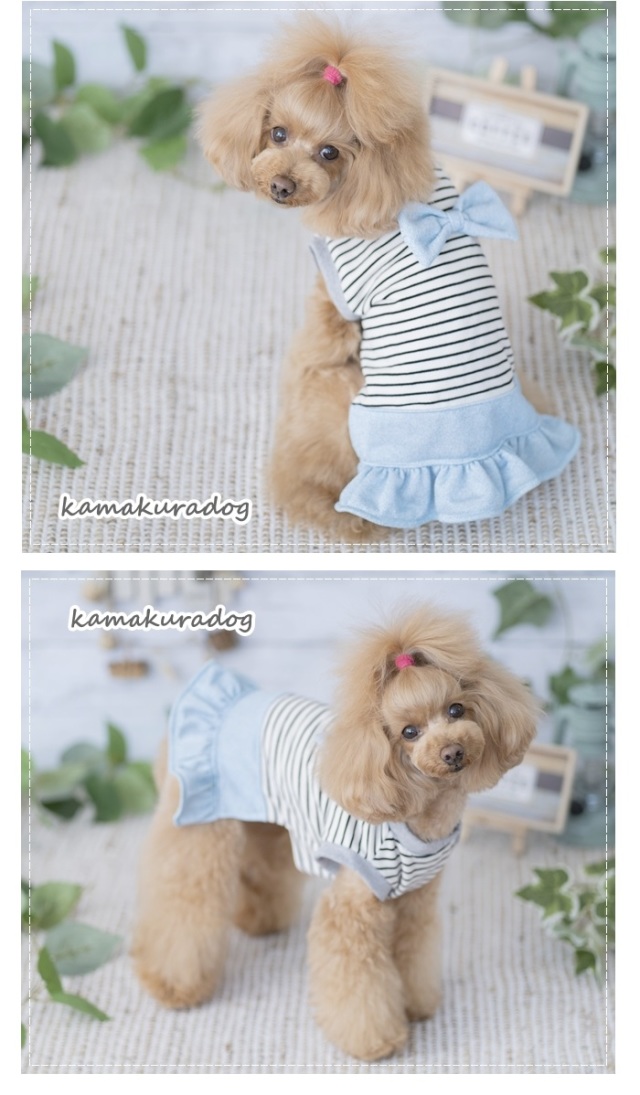 洋服のデザイン、また愛犬の個体差や毛量によって若干サイズが異なる場合がございますので、事前にワンちゃんのサイズを測った上でご検討下さい