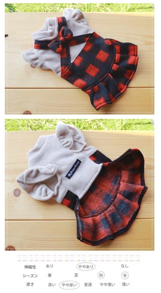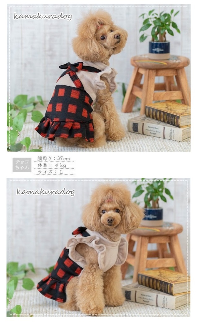 洋服のデザイン、また愛犬の個体差や毛量によって若干サイズが異なる場合がございますので、事前にワンちゃんのサイズを測った上でご検討下さい