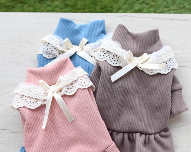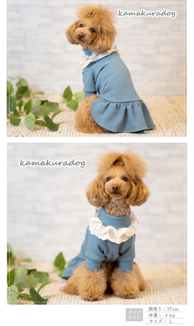洋服のデザイン、また愛犬の個体差や毛量によって若干サイズが異なる場合がございますので、事前にワンちゃんのサイズを測った上でご検討下さい。
