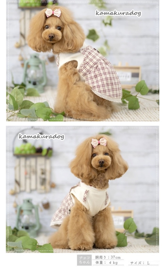洋服のデザイン、また愛犬の個体差や毛量によって若干サイズが異なる場合がございますので、事前にワンちゃんのサイズを測った上でご検討下さい。