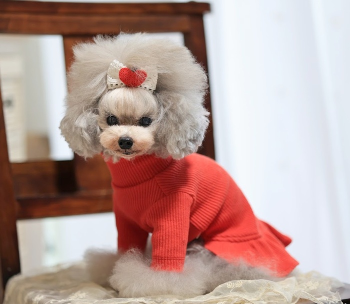 洋服のデザイン、また愛犬の個体差や毛量によって若干サイズが異なる場合がございますので、事前にワンちゃんのサイズを測った上でご検討下さい。