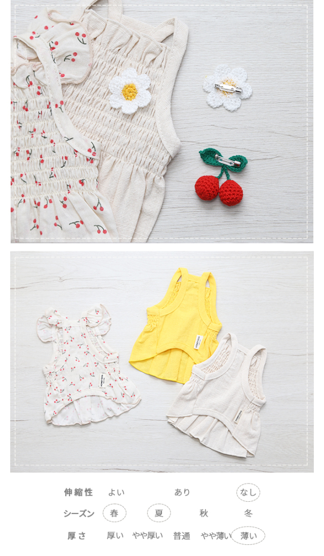洋服のデザイン、また愛犬の個体差や毛量によって若干サイズが異なる場合がございますので、事前にワンちゃんのサイズを測った上でご検討下さい。