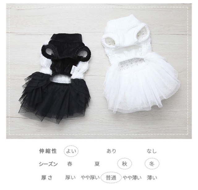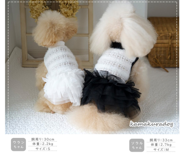 洋服のデザイン、また愛犬の個体差や毛量によって若干サイズが異なる場合がございますので、事前にワンちゃんのサイズを測った上でご検討下さい。