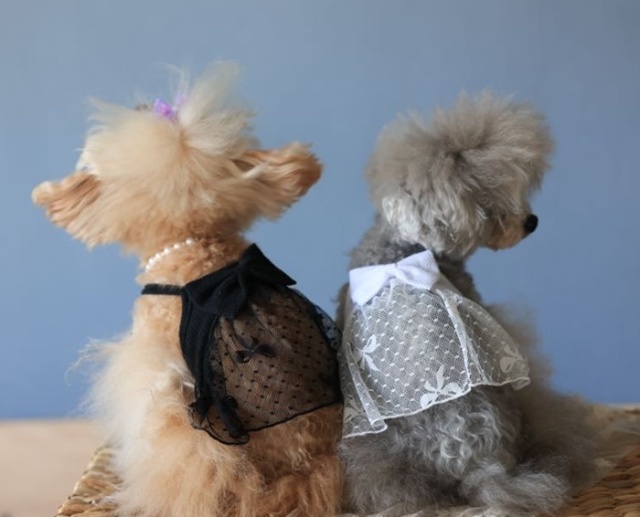 洋服のデザイン、また愛犬の個体差や毛量によって若干サイズが異なる場合がございますので、事前にワンちゃんのサイズを測った上でご検討下さい。