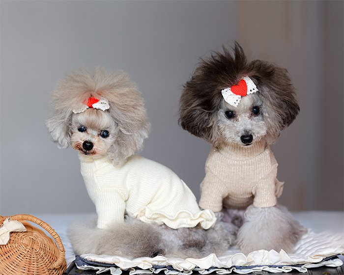 洋服のデザイン、また愛犬の個体差や毛量によって若干サイズが異なる場合がございますので、事前にワンちゃんのサイズを測った上でご検討下さい。