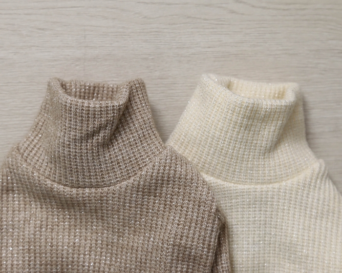 繊細なラメ糸を編み込んだ生地が、上品で存在感のある一着。