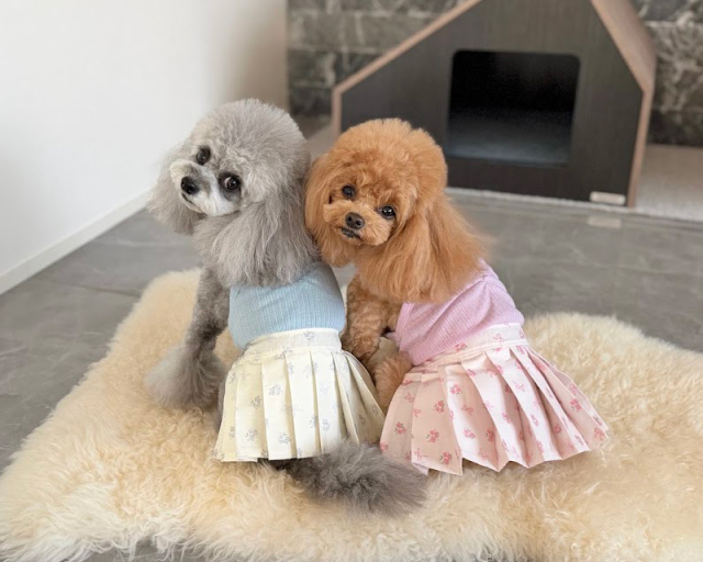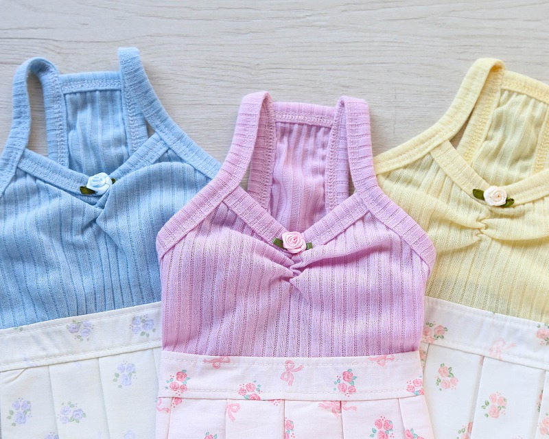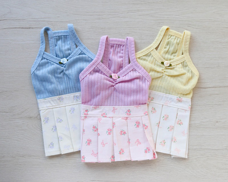 やわらかなパステルカラーが、わんちゃんの可愛らしさをやさしく引き立てます。春夏のお出かけや撮影にもぴったりの華やかさです。