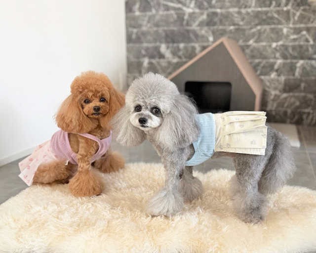 洋服のデザイン、また愛犬の個体差や毛量によって若干サイズが異なる場合がございますので、事前にワンちゃんのサイズを測った上でご検討下さい。